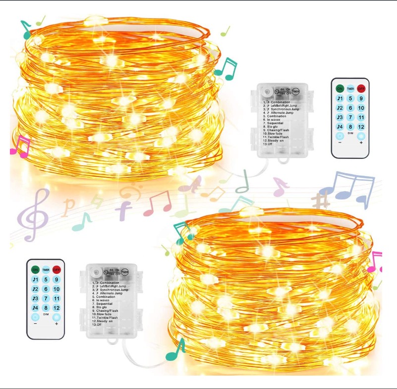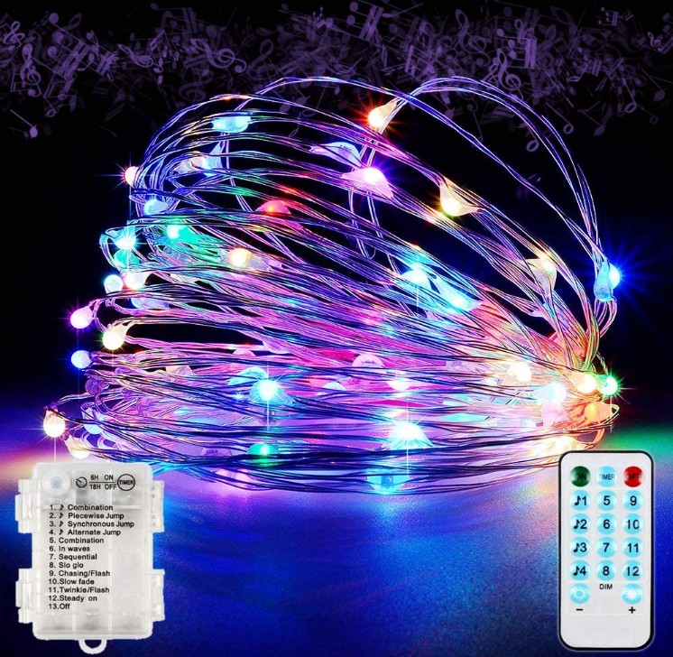 Caja de baterías a prueba de agua Lámpara LED de cobre con control de música / sonido para el control remoto de Navidad